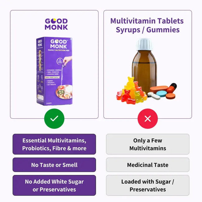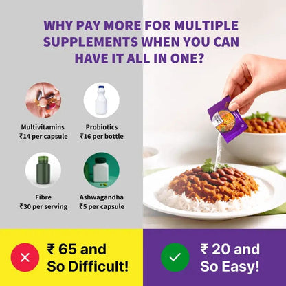 India's 1st Nutrition Mix with No Taste, Color or Smell, when added to food. Super Easy to use.